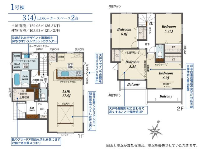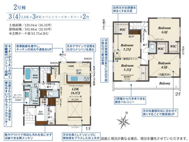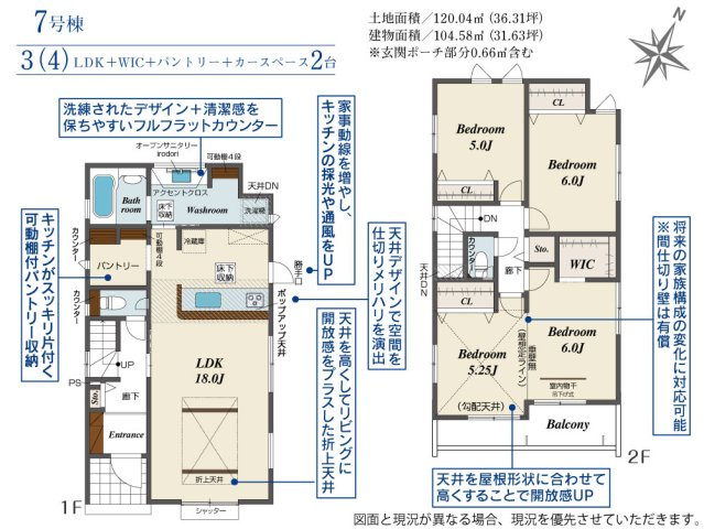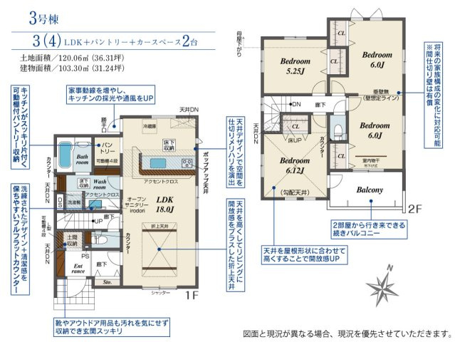 LDK 18.0帖/洋室 12.0帖/洋室 5.2帖/洋室 5.2帖 - 向き